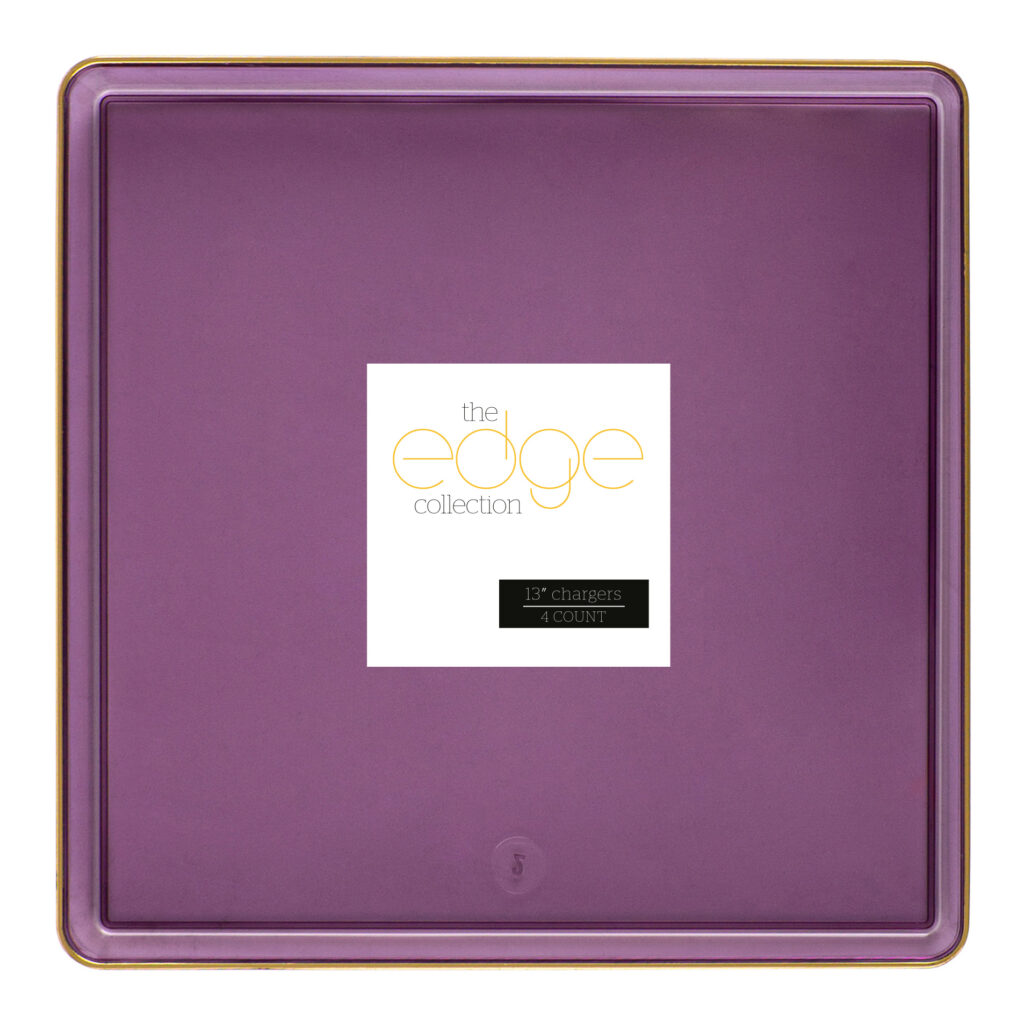 Square Edge 13″ Chargers Purple Transparent/Gold Rim