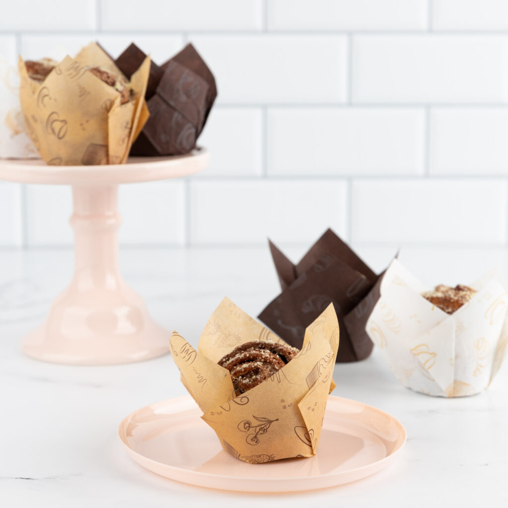 Now in a convenient multipack – take your specialty one step further with parchment tulip baking cups! These cupcake holders yield great baking results and look beautiful on bakery shelves. The grease proof paper is an excellent choice for maintaining sanitary regulations.