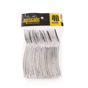 Enjoy a meal with friends with this exclusive silver plastic flatware set. The heavy weight of the plastic can handle tough foods and will serve as a great substitute for real flatware at parties and events.