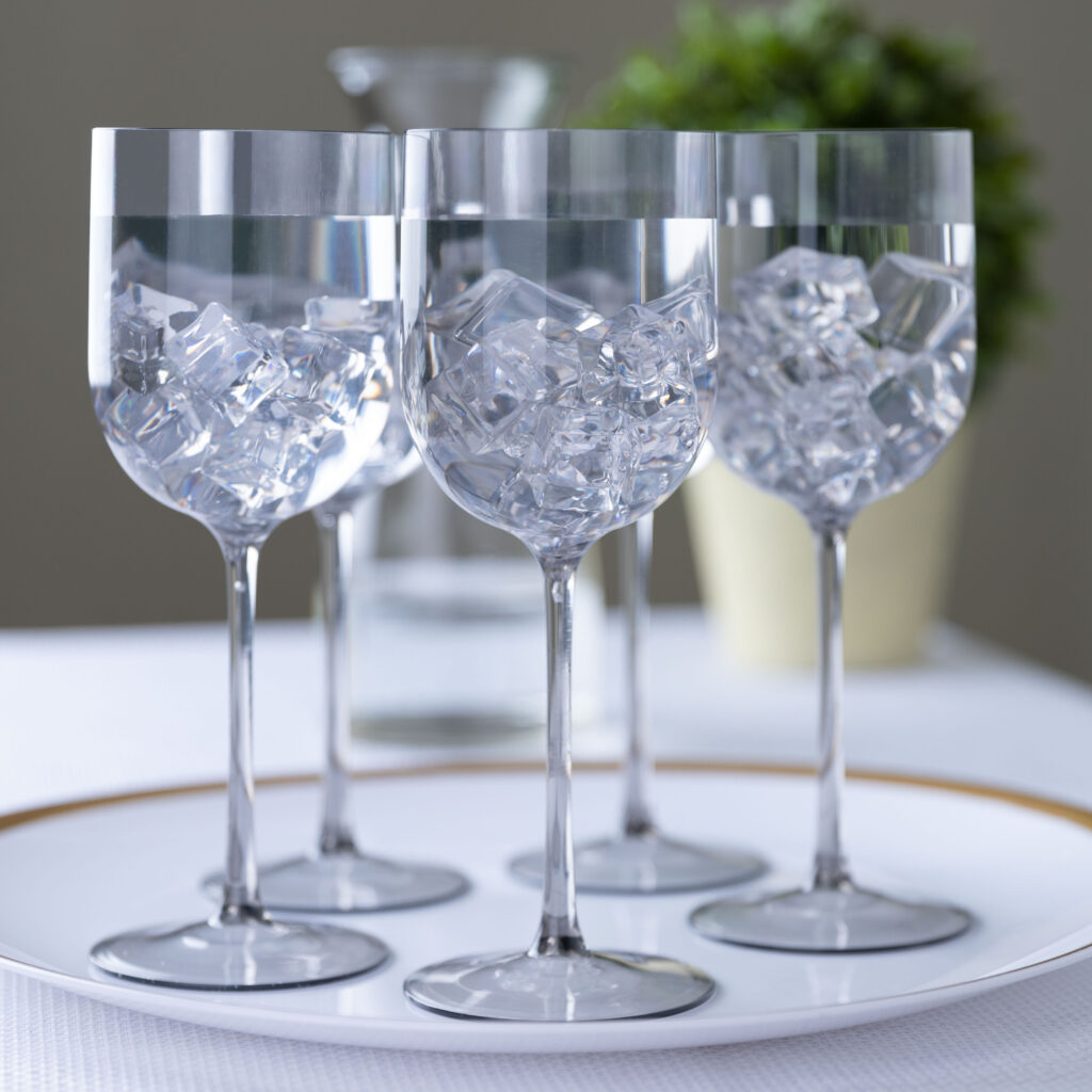 It’s all the rage- smokey glass goblets for your party. Add an air of sophistication to your table easily and instantly.
